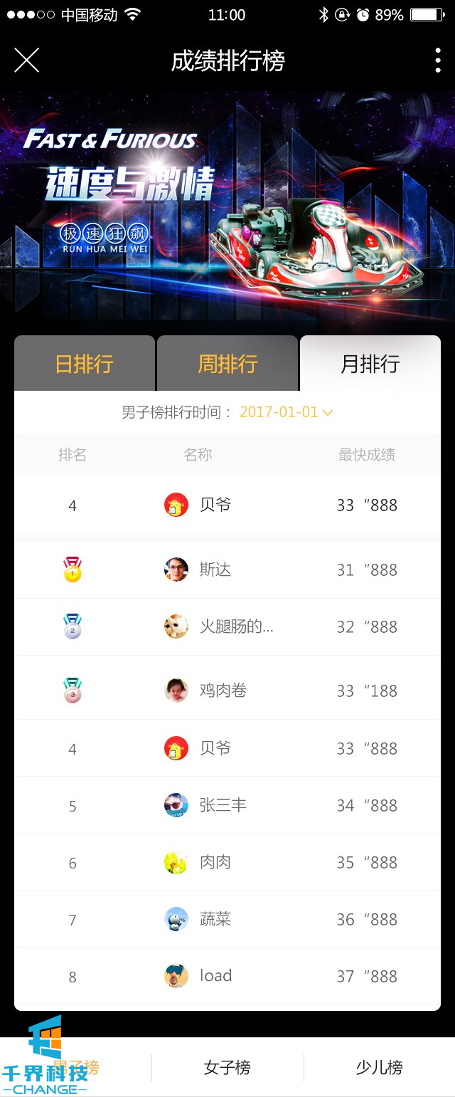 卡丁車(chē)館成績(jì)排行榜