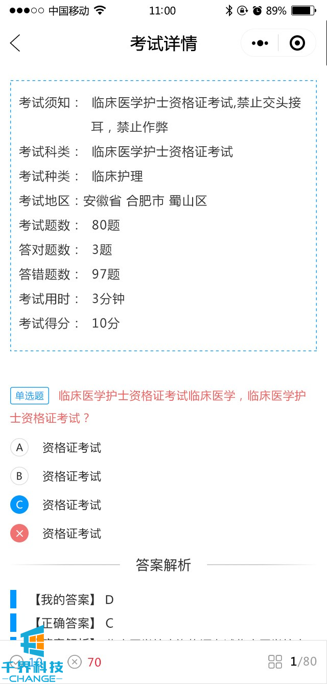 包含模擬考試,提交答題卡,然后出考試成績(jì),試題解析,章節練習,錯題集錦,題型選擇
