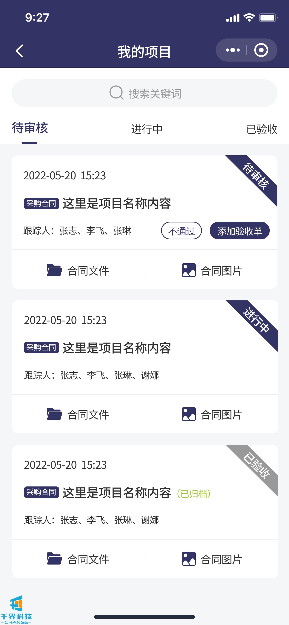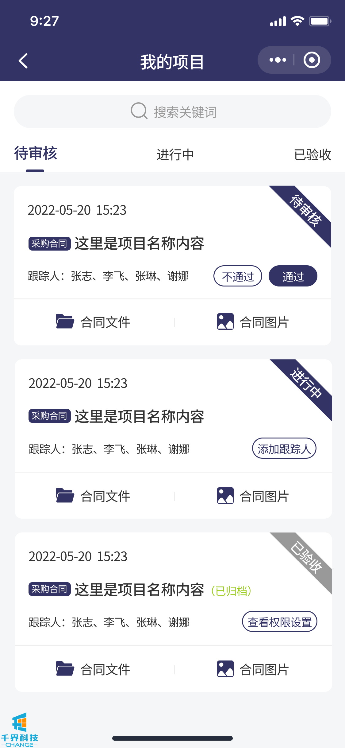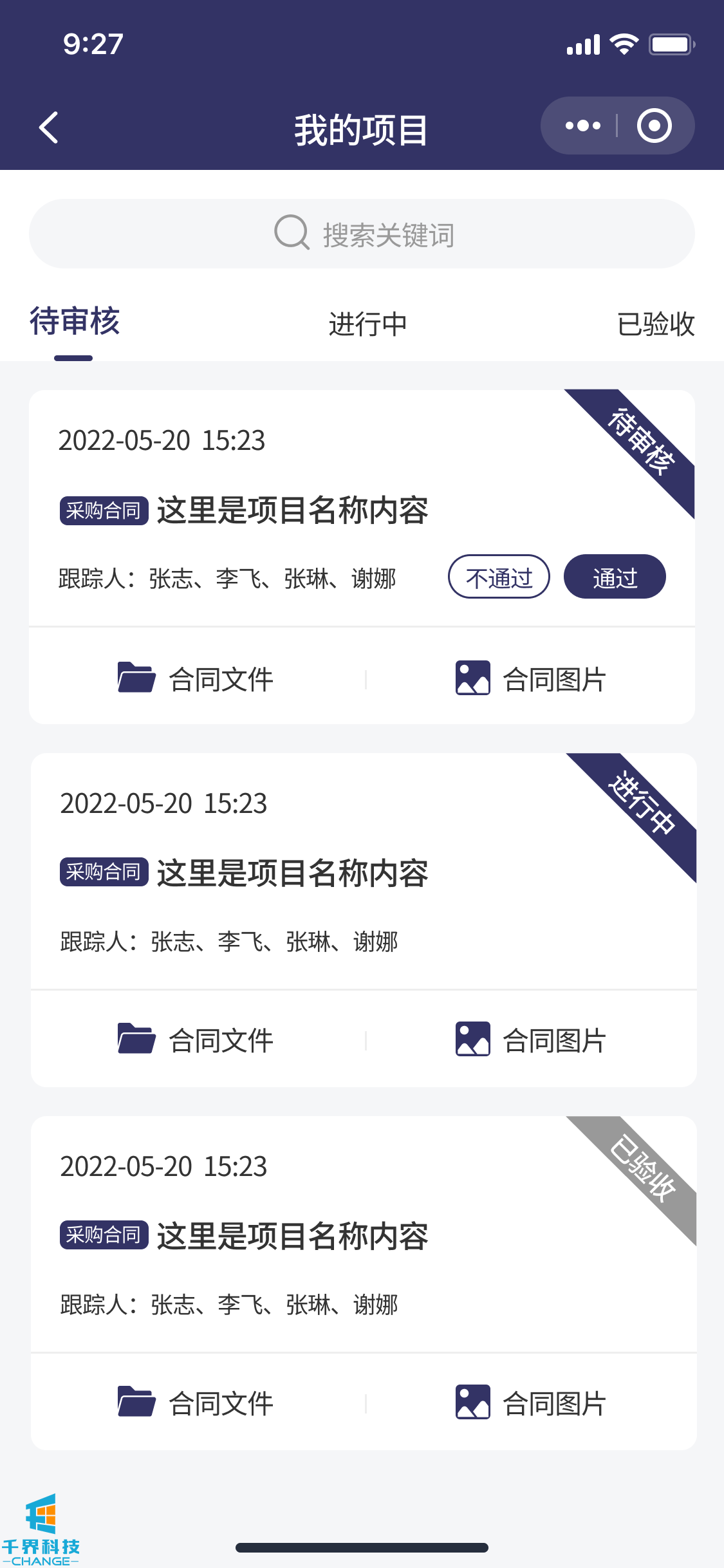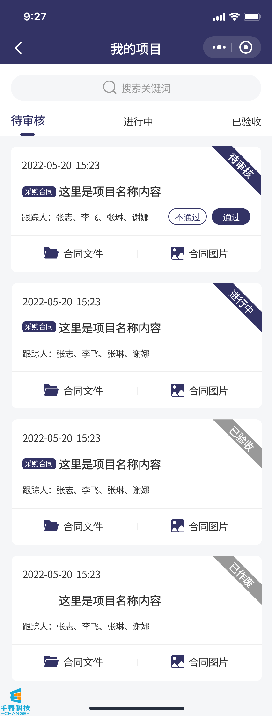 該項目是一個(gè)解決企業(yè)內部付款審批流程的線(xiàn)上程序。包含了負責人,法務(wù),領(lǐng)導,驗收人員,財務(wù),出納。根據設定的流程依次審批??梢詫?shí)現多合同,多次付款審批,每次付款記錄多角色審核明細等