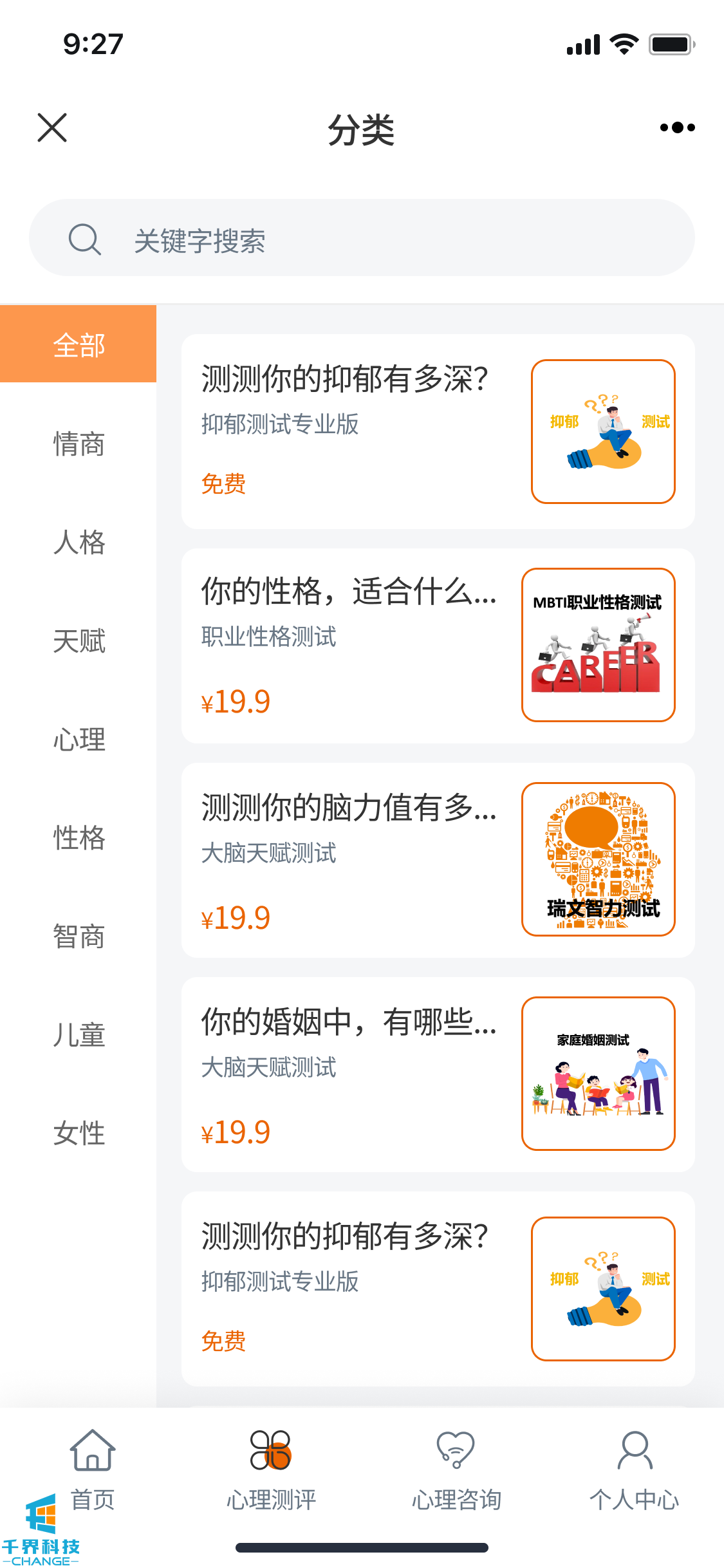 付費心理測評公眾號
