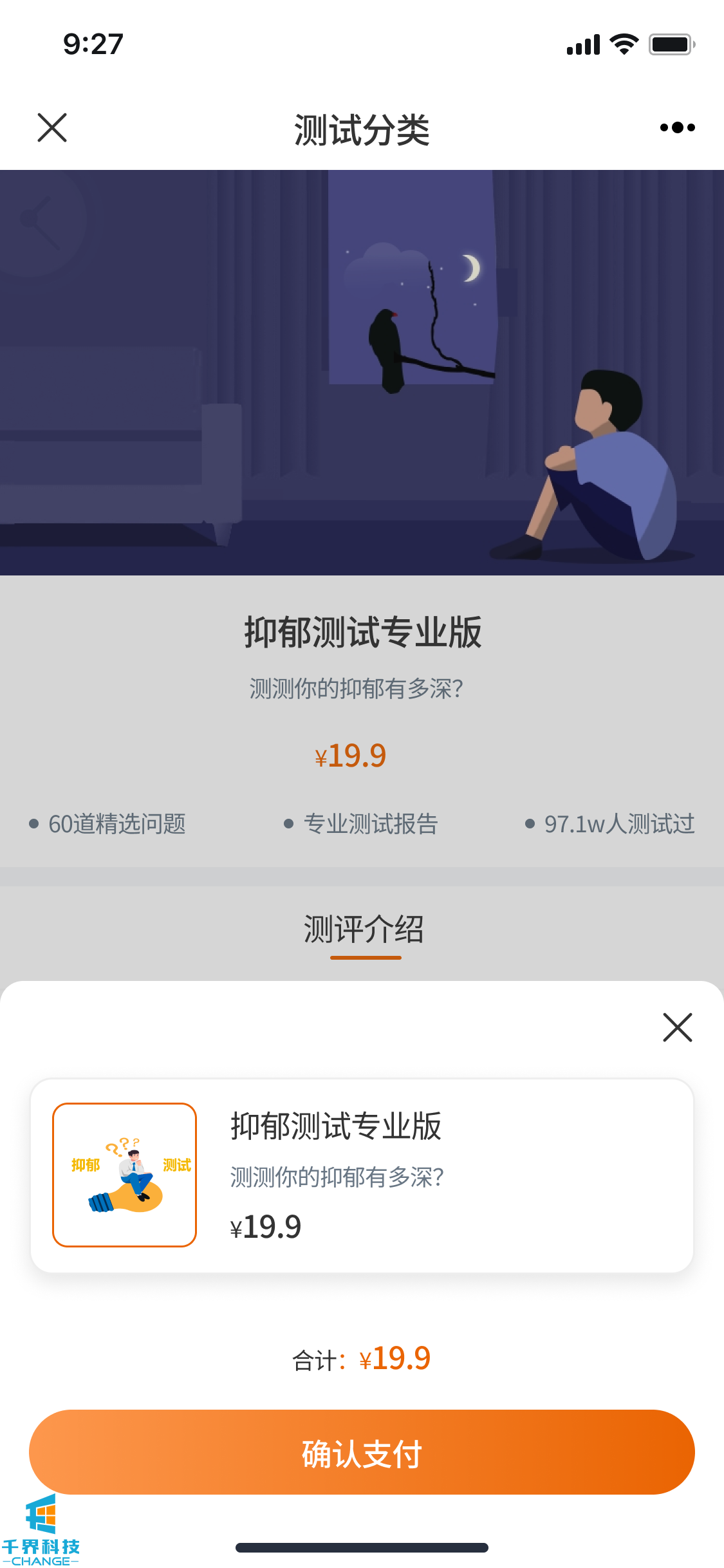 該項目是付費心理測評的公眾號,用戶(hù)可以付費/免費進(jìn)行心理測試,每個(gè)測試題目固定,根據最終的得分區間匹配對應的測試結果