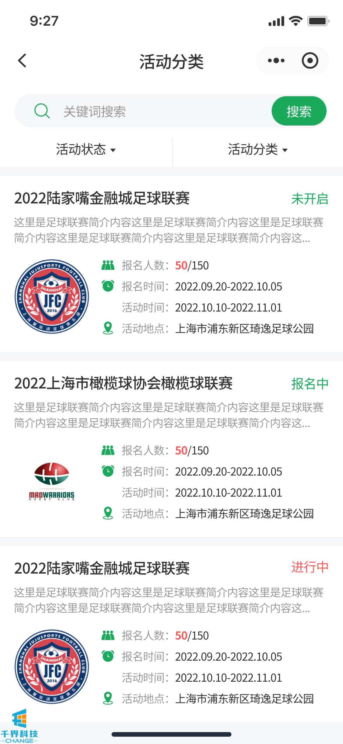 賽事報名小程序