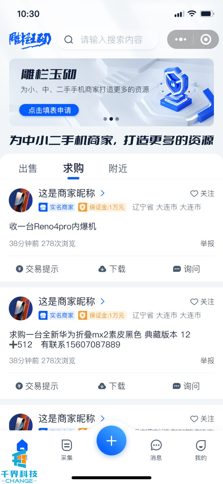 該項目一個(gè)信息發(fā)布小程序,用戶(hù)可以在平臺入駐成為商家,成為商家之后可以發(fā)布自己的求購和出售的信息,商家可以在平臺即時(shí)溝通。